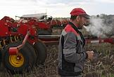 Посевная кампания в Омской области. Жанровая фотография. Сотрудник Крестьянского хозяйства "Тритикум" во время посевной.