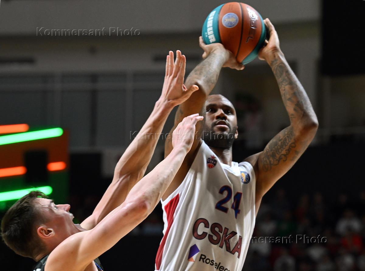 Единая лига ВТБ 2023/2024. Финал. Матч по баскетболу между командами УНИКС (Казань) - ЦСКА (Москва) на стадионе "Баскет-холл". Игрок команды ЦСКА Тони Джекири во время матча.