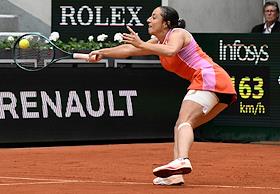 Открытый чемпионат Франции по теннису "Ролан Гаррос-2024" (Roland Garros). Женщины. 3-й круг. Итальянская теннисистка Елизабетта Кочаретто во время матча с российской теннисисткой Людмилой Самсоновой.