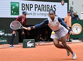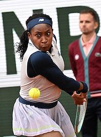 Открытый чемпионат Франции по теннису "Ролан Гаррос-2024" (Roland Garros). Женщины. 3-й круг. Американская теннисистка Кори Гауфф во время матча с украинской теннисисткой Даяной Ястремской.