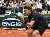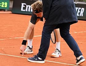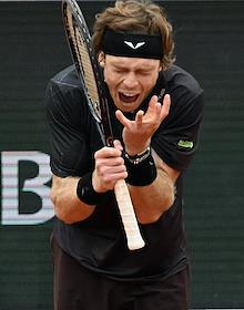Открытый чемпионат Франции по теннису "Ролан Гаррос-2024" (Roland Garros). Мужчины. 3-й круг. Российский теннисист Андрей Рублев во время матча с итальянским теннисистом Маттео Арнальди.