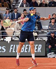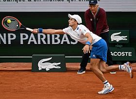 Открытый чемпионат Франции по теннису "Ролан Гаррос-2024" (Roland Garros). Мужчины. 3-й круг. Российский теннисист Павел Котов во время матча с итальянским теннисистом Янником Синнером.