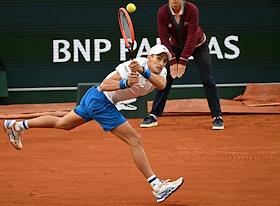Открытый чемпионат Франции по теннису "Ролан Гаррос-2024" (Roland Garros). Мужчины. 3-й круг. Итальянский теннисист Маттео Арнальди во время матча с российским теннисистом Андреем Рублевым.