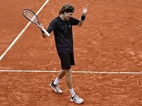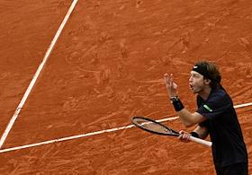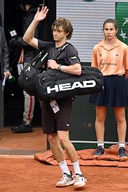 Открытый чемпионат Франции по теннису "Ролан Гаррос-2024" (Roland Garros). Мужчины. 3-й круг. Российский теннисист Андрей Рублев после матча с итальянским теннисистом Маттео Арнальди.