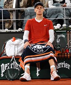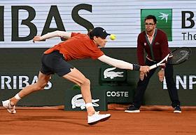 Открытый чемпионат Франции по теннису "Ролан Гаррос-2024" (Roland Garros). Мужчины. 3-й круг. Итальянский теннисист Янник Синнер во время матча с российским теннисистом Павлом Котовым.