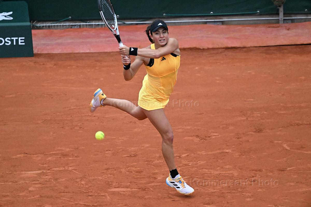 Открытый чемпионат Франции по теннису "Ролан Гаррос-2024" (Roland Garros). Женщины. 3-й круг. Российская теннисистка Элина Аванесян во время матча с китайской теннисисткой Чжэн Циньвэнь.