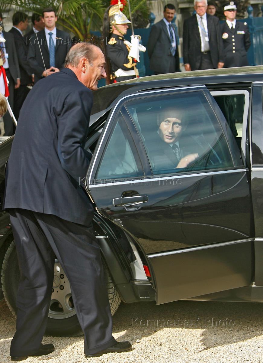 Russian President Vladimir Putin, right, and French President Jacques Chirac, left, met in Chateau de Compiegne near Paris.