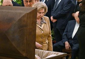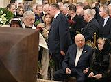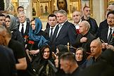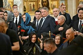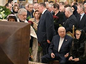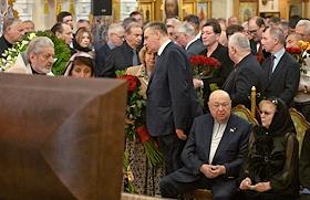 Farewell ceremony for the State Duma deputy of Russia Artur Chilingarov in the Transfiguration Church of the Cathedral of Christ the Savior. Artur Chilingarov's widow Tatyana (right) and member of the Committee for Construction and Housing and Communal Services Vladimir Resin (second from right) at the ceremony.