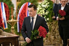 Farewell ceremony for Russian State Duma deputy Artur Chilingarov in the Transfiguration Church of the Cathedral of Christ the Savior. Governor of the Moscow Region Andrei Vorobyov at the ceremony.