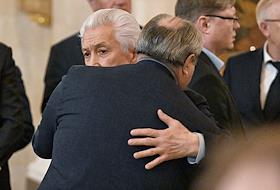 Farewell ceremony for the State Duma deputy of Russia Artur Chilingarov in the Transfiguration Church of the Cathedral of Christ the Savior. The head of the United Russia faction in the State Duma of Russia Vladimir Vasilyev (left) at the ceremony.