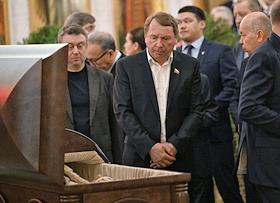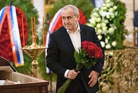 Farewell ceremony for the State Duma deputy of Russia Artur Chilingarov in the Transfiguration Church of the Cathedral of Christ the Savior. First Deputy Chairman of the State Duma Committee on Affairs of the Commonwealth of Independent States, Eurasian Integration and Relations with Compatriots Konstantin Zatulin at the ceremony.