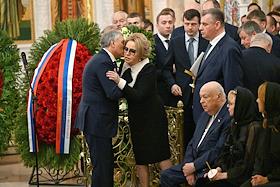 Farewell ceremony for Russian State Duma deputy Artur Chilingarov in the Transfiguration Church of the Cathedral of Christ the Savior. Commissioner for Human Rights in Russia Tatyana Moskalkova at the ceremony.