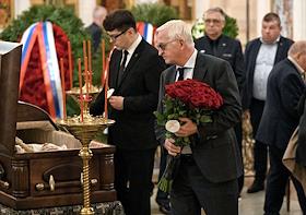Farewell ceremony for Russian State Duma deputy Artur Chilingarov in the Transfiguration Church of the Cathedral of Christ the Savior. First Deputy Chairman of the Russian State Duma Committee on Ecology, Natural Resources and Environmental Protection Vyacheslav Fetisov at the ceremony.