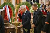 Farewell ceremony for the State Duma deputy of Russia Artur Chilingarov in the Transfiguration Church of the Cathedral of Christ the Savior. Chairman of the Russian State Duma Committee on Health Badma Bashankaev (second from left) and Chairman of the Russian State Duma Committee on the Development of Civil Society, Issues of Public and Religious Associations Olga Timofeeva (third from right) at the ceremony.
