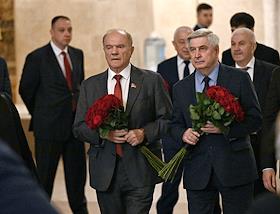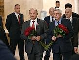 Farewell ceremony for the State Duma deputy of Russia Artur Chilingarov in the Transfiguration Church of the Cathedral of Christ the Savior. Leader of the Communist Party of the Russian Federation, head of the Communist Party faction in the State Duma of Russia Gennady Zyuganov (left) and First Deputy Chairman of the State Duma of Russia Ivan Melnikov (right) at the ceremony.