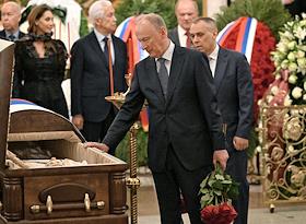 Farewell ceremony for Russian State Duma deputy Artur Chilingarov in the Transfiguration Church of the Cathedral of Christ the Savior. Assistant to the President of Russia Nikolai Patrushev at the ceremony.