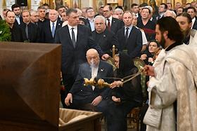 Farewell ceremony for Russian State Duma deputy Artur Chilingarov in the Transfiguration Church of the Cathedral of Christ the Savior. Catholicos and Supreme Patriarch of All Armenians Karekin II (center) at the ceremony.