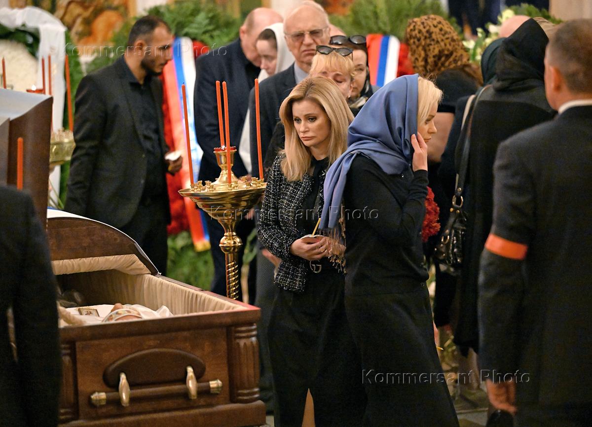 Farewell ceremony for Russian State Duma deputy Artur Chilingarov in the Transfiguration Church of the Cathedral of Christ the Savior. Artur Chilingarov's widow Tatyana (left) and daughter, founder of the Arctic Explorer brand Ksenia Chilingarova (right) at the ceremony.