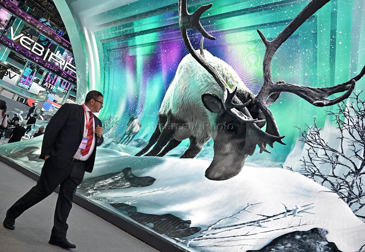 XXVII Петербургский международный экономический форум (ПМЭФ) 2024 в конгрессно-выставочном центре "Экспофорум". Выставка SPIEF Investment & Business Expo. Жанровая фотография. Стенд государственной корпорации (ГК) "Росатом".