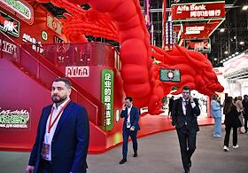 XXVII Петербургский международный экономический форум (ПМЭФ) 2024 в конгрессно-выставочном центре "Экспофорум". Выставка SPIEF Investment & Business Expo. Жанровая фотография. Стенд Альфа-банка.