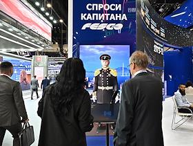 XVII Петербургский международный экономический форум (ПМЭФ) 2024 в конгрессно-выставочном центре "Экспофорум". Жанровые фотографии. Стенд ОАО "Российские железные дороги" (РЖД).