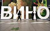 XXVII Петербургский международный экономический форум (ПМЭФ) 2024 в конгрессно-выставочном центре "Экспофорум". Выставка SPIEF Investment & Business Expo. Жанровая фотография. Стенд "Россельхохбанка" (РСХБ) на выставке. Надпись "Вино".