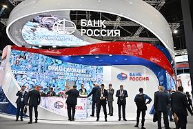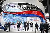 XXVII Петербургский международный экономический форум (ПМЭФ) 2024 в конгрессно-выставочном центре "Экспофорум". Выставка SPIEF Investment & Business Expo. Жанровая фотография. Стенд "Банк Россия" на выставке.