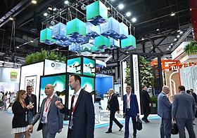 XXVII Петербургский международный экономический форум (ПМЭФ) 2024 в конгрессно-выставочном центре "Экспофорум". Выставка SPIEF Investment & Business Expo. Жанровая фотография. Стенд Газпромбанка.