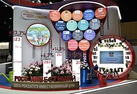 XXVII Петербургский международный экономический форум (ПМЭФ) 2024 в конгрессно-выставочном центре "Экспофорум". Выставка SPIEF Investment & Business Expo. Жанровая фотография. Стенд Московской области на выставке.