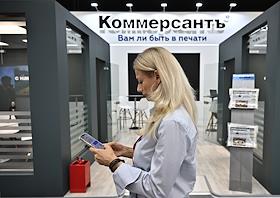 XXVII Петербургский международный экономический форум (ПМЭФ) 2024 в конгрессно-выставочном центре "Экспофорум". Выставка SPIEF Investment & Business Expo. Жанровая фотография. Стенд ИД "Коммерсантъ".