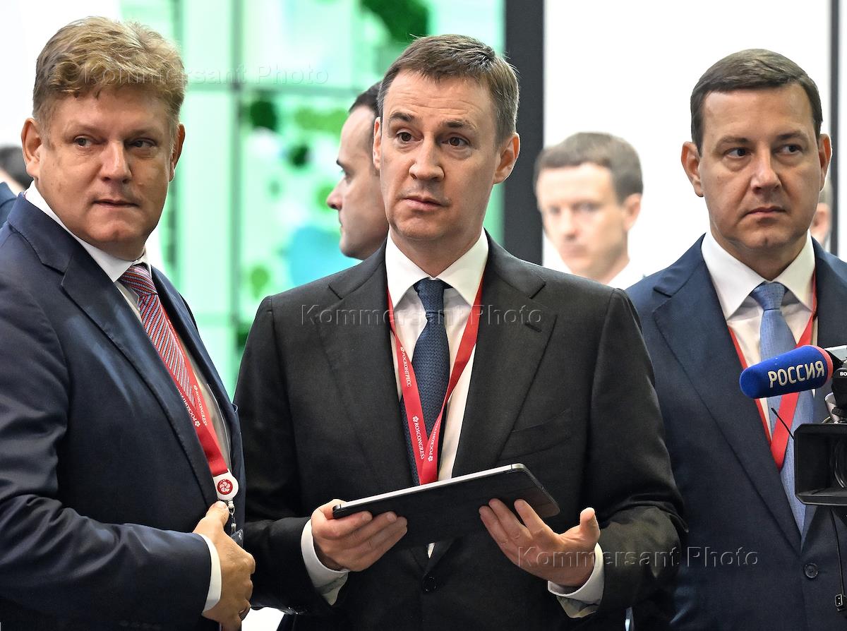 XXVII Петербургский международный экономический форум (ПМЭФ) 2024 в конгрессно-выставочном центре "Экспофорум". Заместитель председателя Правительства России Дмитрий Патрушев (в центре) на форуме.