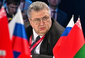 XXVII Петербургский международный экономический форум (ПМЭФ) 2024 в конгрессно-выставочном центре "Экспофорум". Сессия "Союзное государство: 25 лет интеграции – итоги и новые задачи". Заместитель министра иностранных дел России Михаил Галузин во время сессии.