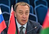 XXVII Петербургский международный экономический форум (ПМЭФ) 2024 в конгрессно-выставочном центре "Экспофорум". Сессия "Союзное государство: 25 лет интеграции – итоги и новые задачи". Заместитель председателя правительства России Алексей Оверчук (слева), первый заместитель премьер-министра республики Беларусь (в центре) и чрезвычайный и полномочный посол Республики Беларусь в России дмитрий Крутой (второй справа) перед началом сессии.