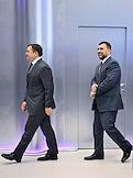 XXVII Петербургский международный экономический форум (ПМЭФ) 2024 в конгрессно-выставочном центре "Экспофорум". Сессия "Союзное государство: 25 лет интеграции – итоги и новые задачи". Заместитель министра иностранных дел России Михаил Галузин (слева) и государственный секретарь Союзного государства России и Белоруссии Дмитрий Мезенцев (справа) перед началом сессии.