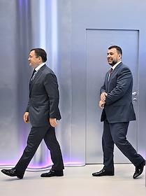 XXVII Петербургский международный экономический форум (ПМЭФ) 2024 в конгрессно-выставочном центре "Экспофорум". Глава Донецкой Народной Республики (ДНР) Денис Пушилин (справа) на форуме.