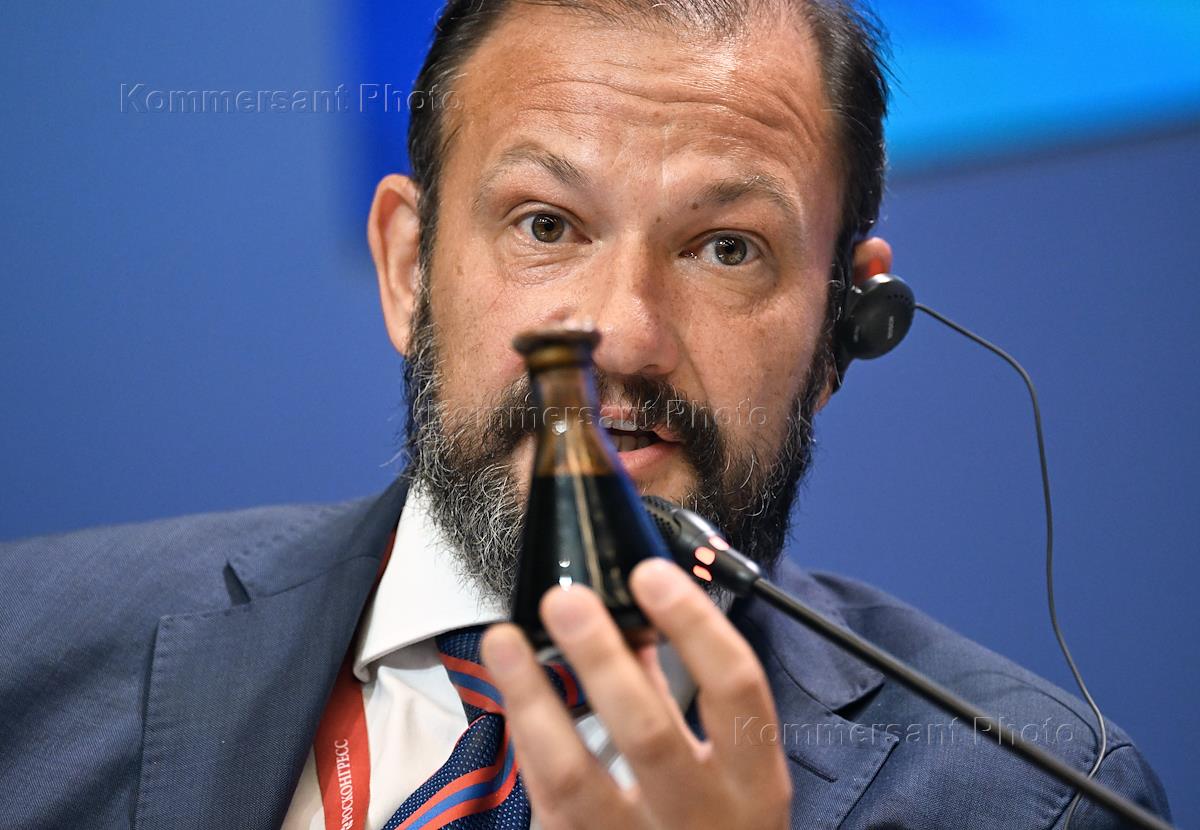 XXVII Петербургский международный экономический форум (ПМЭФ) 2024 в конгрессно-выставочном центре "Экспофорум". Заседание "Будущее рынка нефти и газа: перспективы глобального спроса и планы производителей". Президент Ассоциации "Глобальная энергия" Сергей Брилев во время заседания.