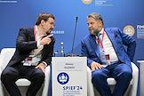 XXVII Петербургский международный экономический форум (ПМЭФ) 2024 в конгрессно-выставочном центре "Экспофорум". Сессия "Банки или маркетплейсы: чей финтех круче?". Главный управляющий директор "Альфа-Банка" Владимир Верхошинский на сессии.