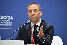XXVII Петербургский международный экономический форум (ПМЭФ) 2024 в конгрессно-выставочном центре "Экспофорум". Заседание "Будущее рынка нефти и газа: перспективы глобального спроса и планы производителей". Президент Ассоциации "Глобальная энергия" Сергей Брилев во время заседания.