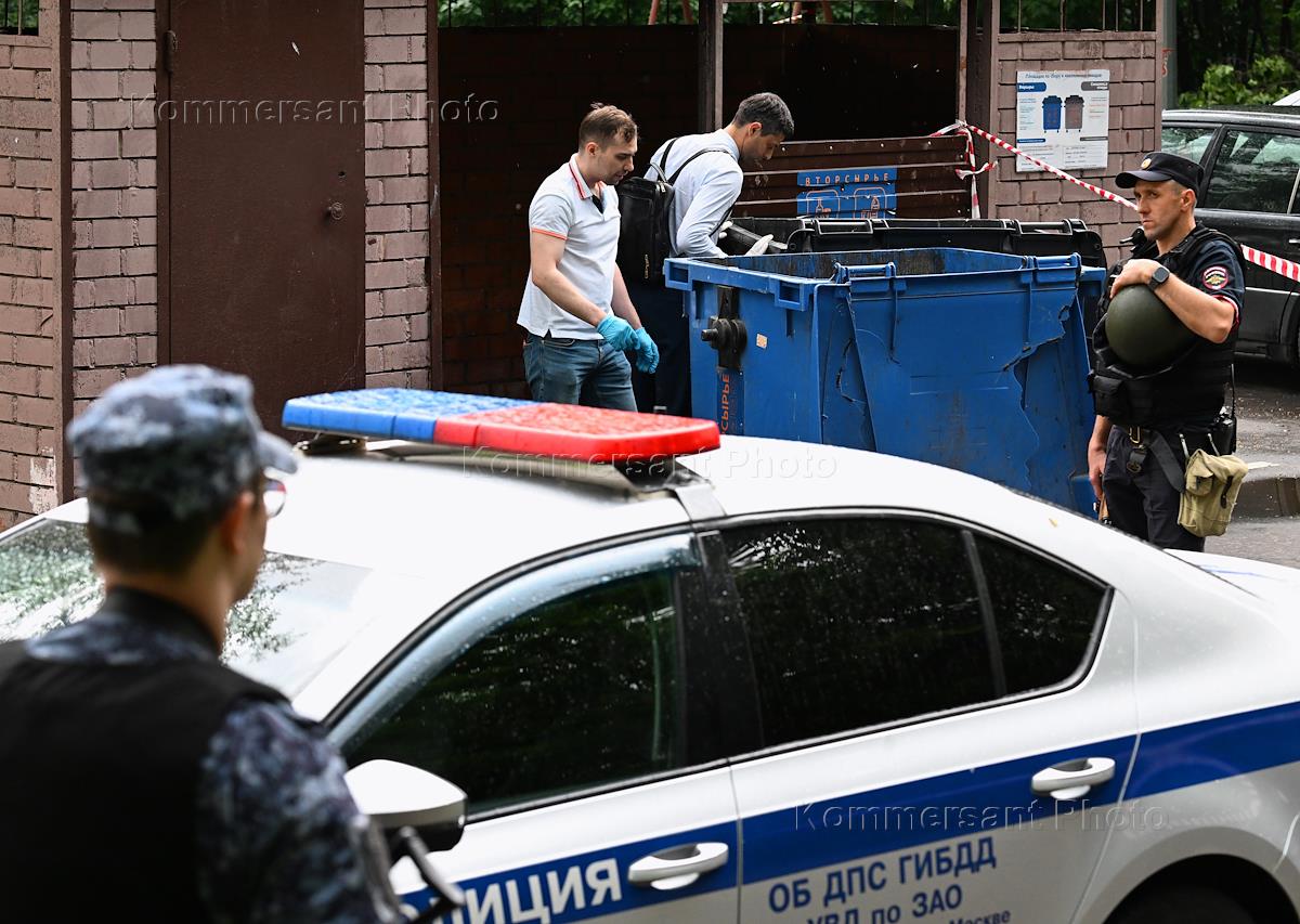 Police officers at the scene of the arrest of a suspect in the murder of a man on Alexey Sviridov Street, on Matveevskaya Street. An unknown person in a mask shot the man and fled.