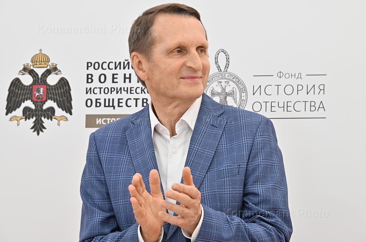 X Книжный фестиваль "Красная площадь" на Красной площади. Директор Службы внешней разведки, председателем Российского исторического общества (РИО) Сергей Нарышкин во время церемонии гашения почтовой марки, посвященной 225-летию со дня рождения поэта Александра Пушкина.