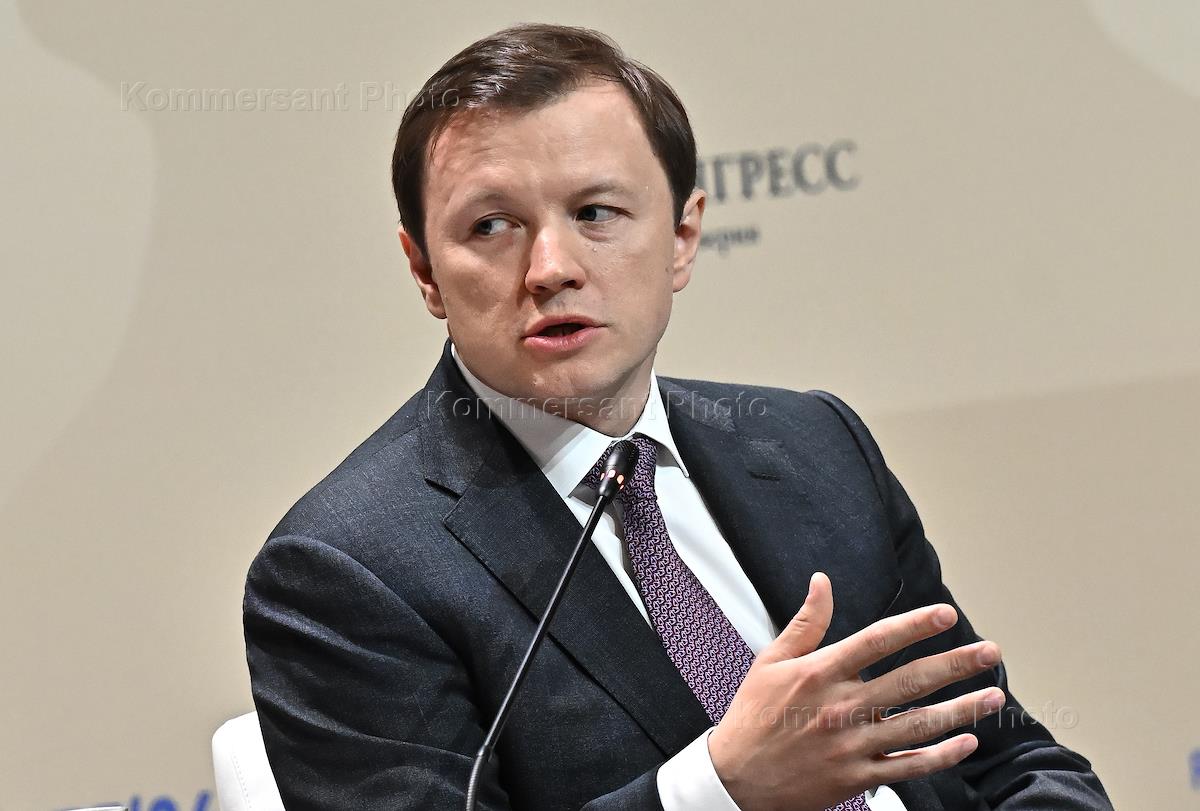 XXVII Петербургский международный экономический форум (ПМЭФ) 2024 в конгрессно-выставочном центре "Экспофорум". Сессия "Как цифровые платформы и экосистемы трансформируют экономику". Заместитель министра экономического развития России Максим Колесников на сессии.