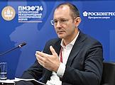 XXVII Петербургский международный экономический форум (ПМЭФ) 2024 в конгрессно-выставочном центре "Экспофорум". Сессия "Не просто стройка: развитие инфраструктуры как драйвер экономического роста". Заместитель мэра Москвы в правительстве Москвы по вопросам экономической политики и имущественно-земельных отношений Владимир Ефимов на сессии.