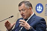 Сессия "Не просто стройка: развитие инфраструктуры как драйвер экономического роста". Председатель правления Государственной компании "Российские автомобильные дороги" Вячеслав Петушенко на сессии.