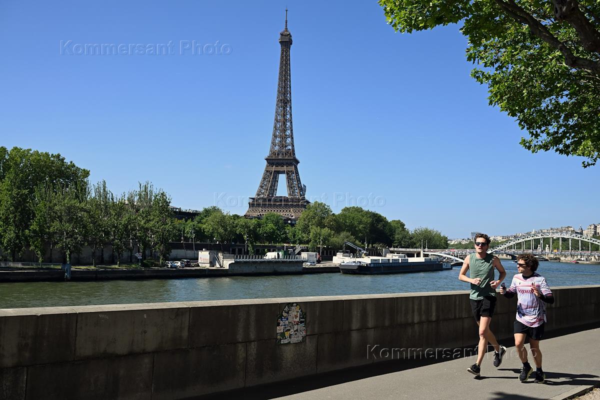 Виды Парижа. Эйфелева башня и набережная реки Сены.