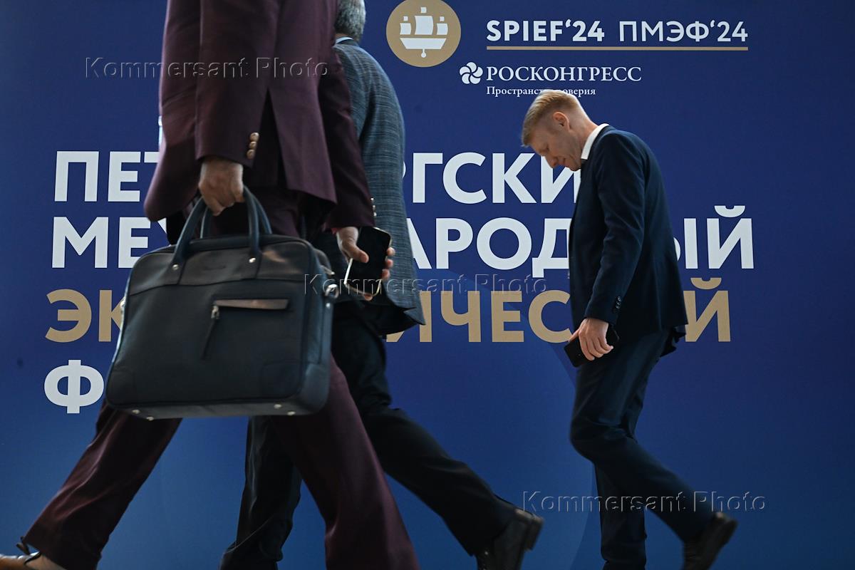 XXVII Петербургский международный экономический форум (ПМЭФ) 2024 в конгрессно-выставочном центре "Экспофорум". Участники форума.