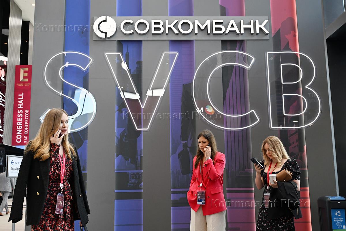 XXVII Петербургский международный экономический форум (ПМЭФ) 2024 в конгрессно-выставочном центре "Экспофорум". Жанровая фотография. Стенд "Совкомбанка".
