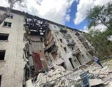Последствия обстрела в Луганске. Разрушенный многоэтажный жилой дом.