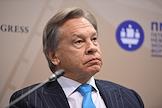 XXVII Петербургский международный экономический форум (ПМЭФ) 2024 в конгрессно-выставочном центре "Экспофорум". Сессия "Полицентричность как норма будущего мира без колоний и гегемонов". Представитель в Совете Федерации России от законодательного (представительного) органа государственной власти Пермского края Алексей Пушков на сессии.