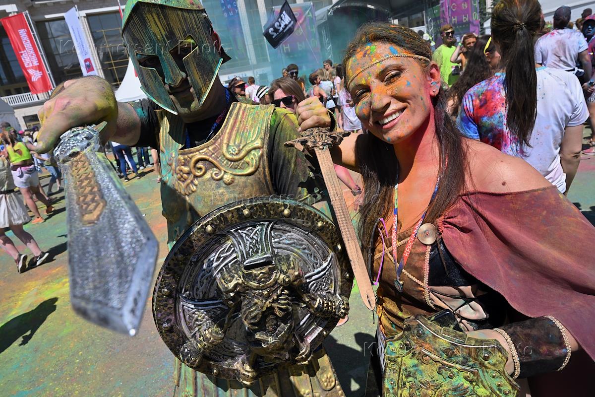 Десятый, юбилейный "Красочный забег" вокруг территории Олимпийского комплекса "Лужники". Участники после забега.