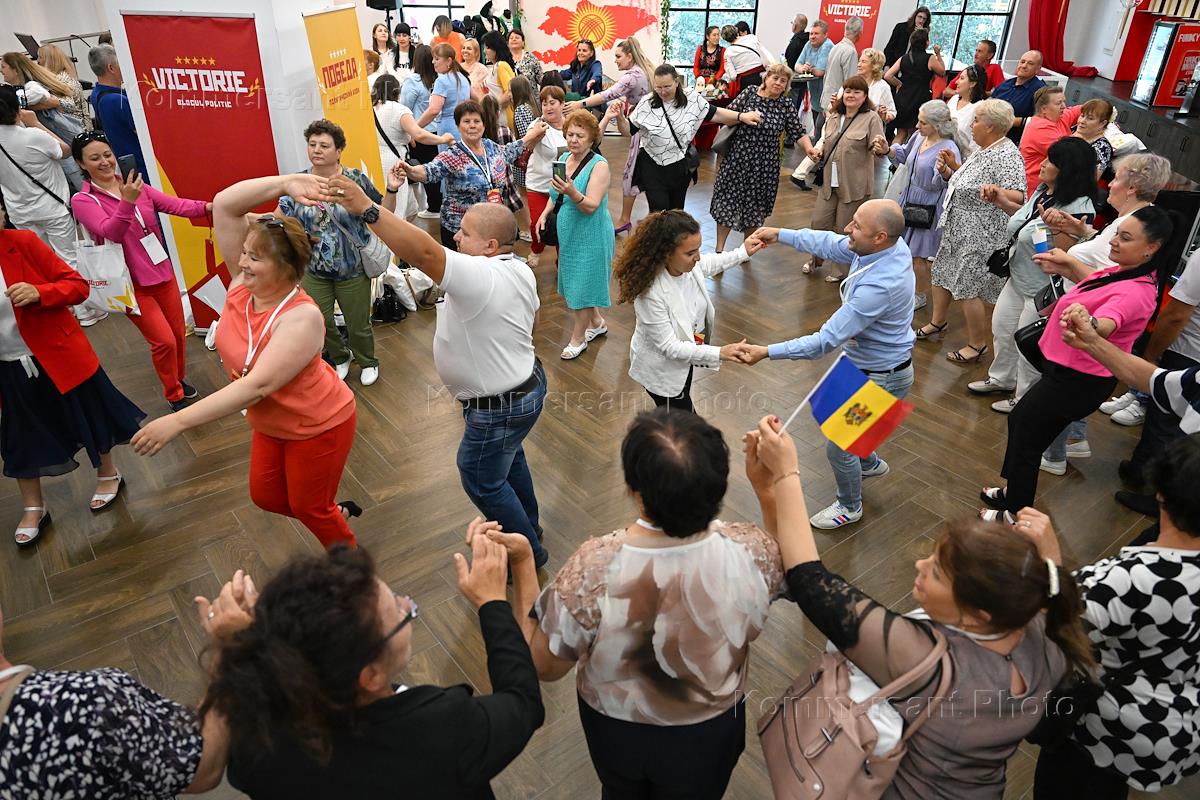 Съезд оппозиционного молдавского блока "Победа" в концертном зале "Москва". Участники съезда танцуют в холле.